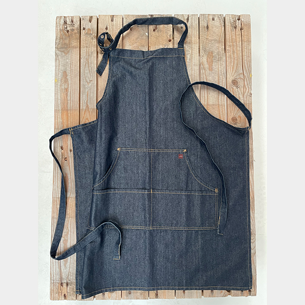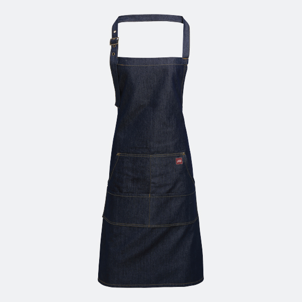 Jeans Denim bib apron with adjustable neck strap.